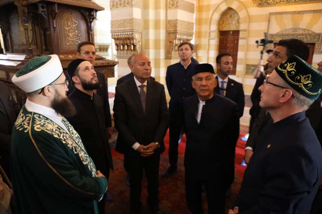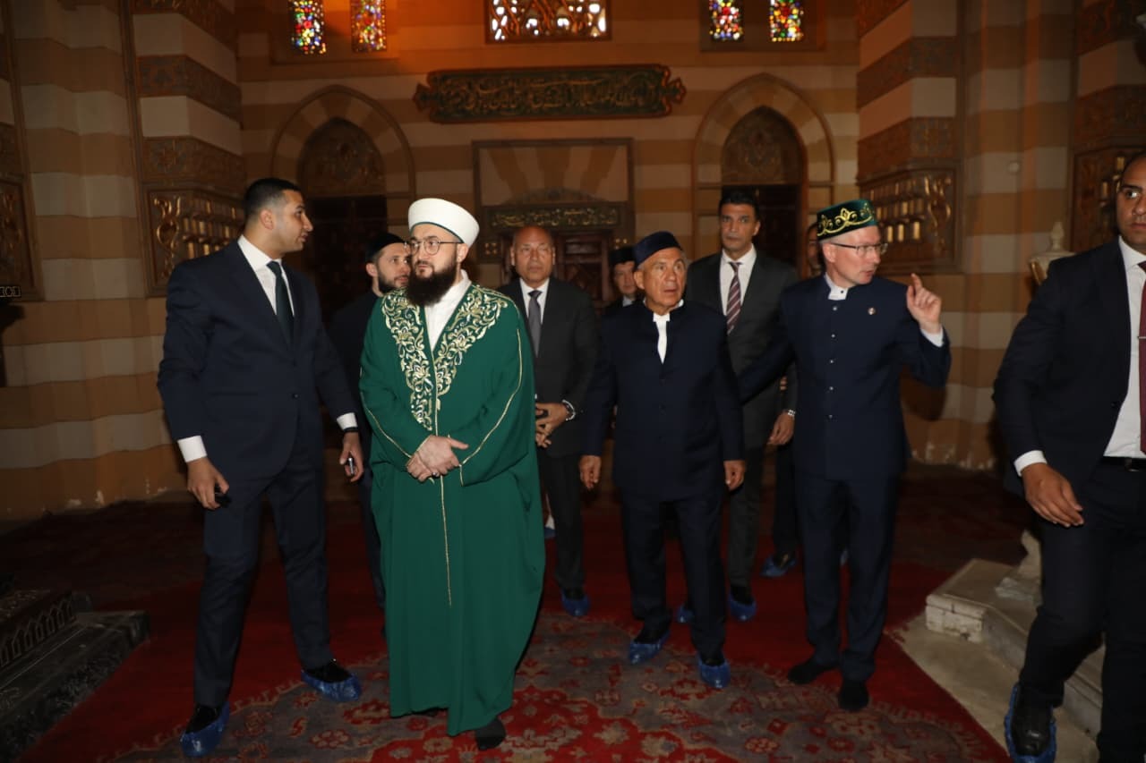 زار حاكم جمهورية تتارستان الروسية رستم مينيخانوف قبر الشيخ موسى جار الله التتري بمقابر العائلة الملكية في حوش الباشا بمنطقة صحراء المماليك قايتباي في مصر.