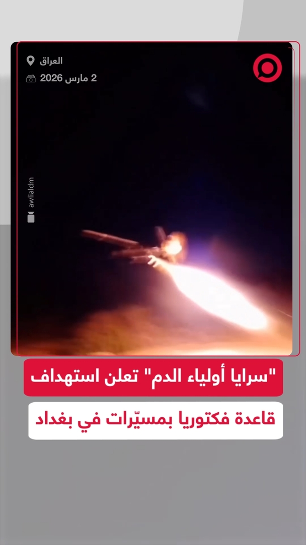 فصيل عراقي يطلق على نفسه "سرايا أولياء الدم" بث لقطات قال إنها تُظهر استهداف قاعدة "فكتوريا" الأمريكية قرب مطار بغداد بسرب من الطائرات المسيّرة، مع مشاهد لحرائق اندلعت عقب الهجوم. #قصف #أمريكا #العراق #ريل #فيديو #viral #اكسبلور