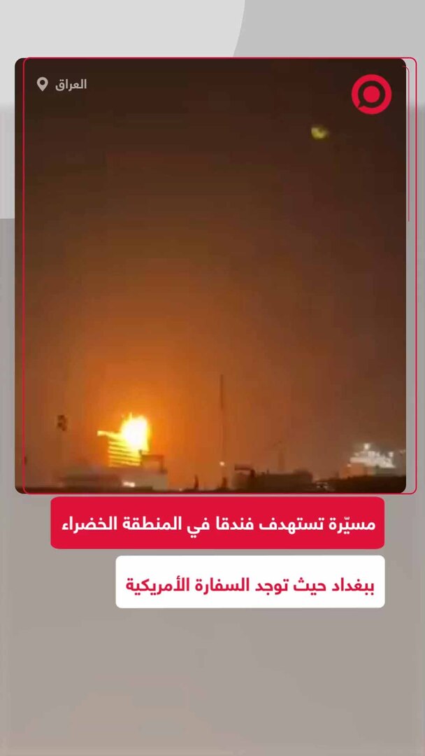 Play/Pause Mute/Unmute طائرة مسيّرة تستهدف فندقا في المنطقة الخضراء ببغداد حيث توجد السفارة الأمريكية والمقرات الدبلوماسية Save post Share Facebook X VK.com Telegram