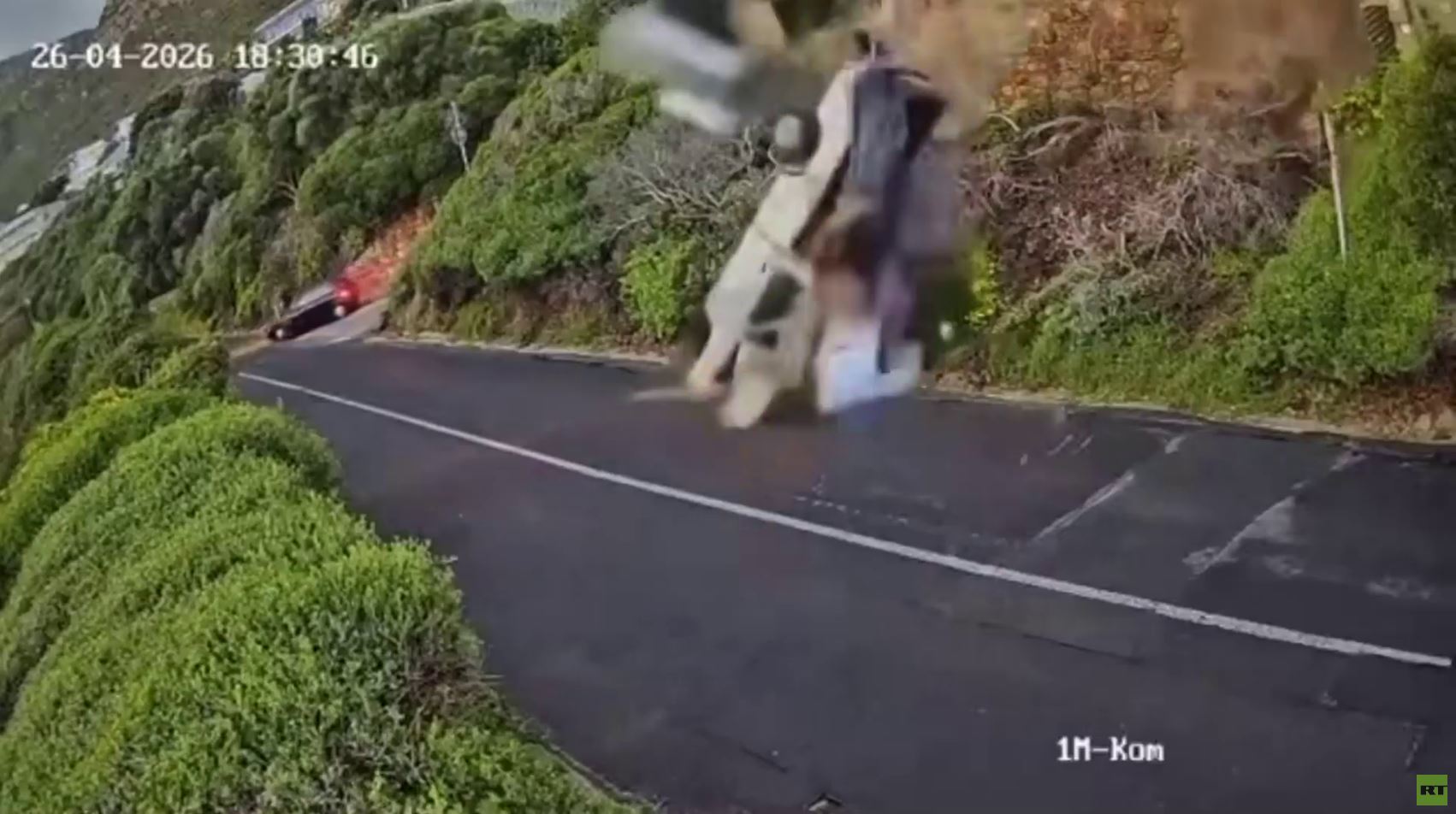 انتشرت على مواقع التواصل الاجتماعي مشاهد توثق لحظة سقوط المركبة في مدينة كيب تاون بجنوب أفريقيا.